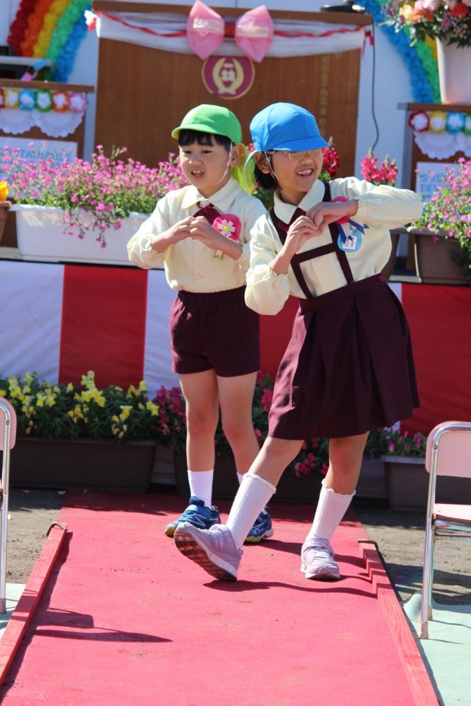 2人一組になって、スキップでステージ前に来て、「はい、ポーズ!」
