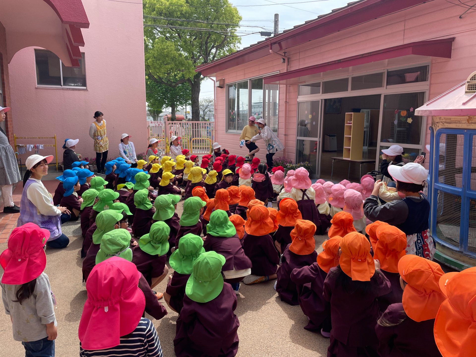 年長児の職員による面白い寸劇交じりの指導に子どもたちも