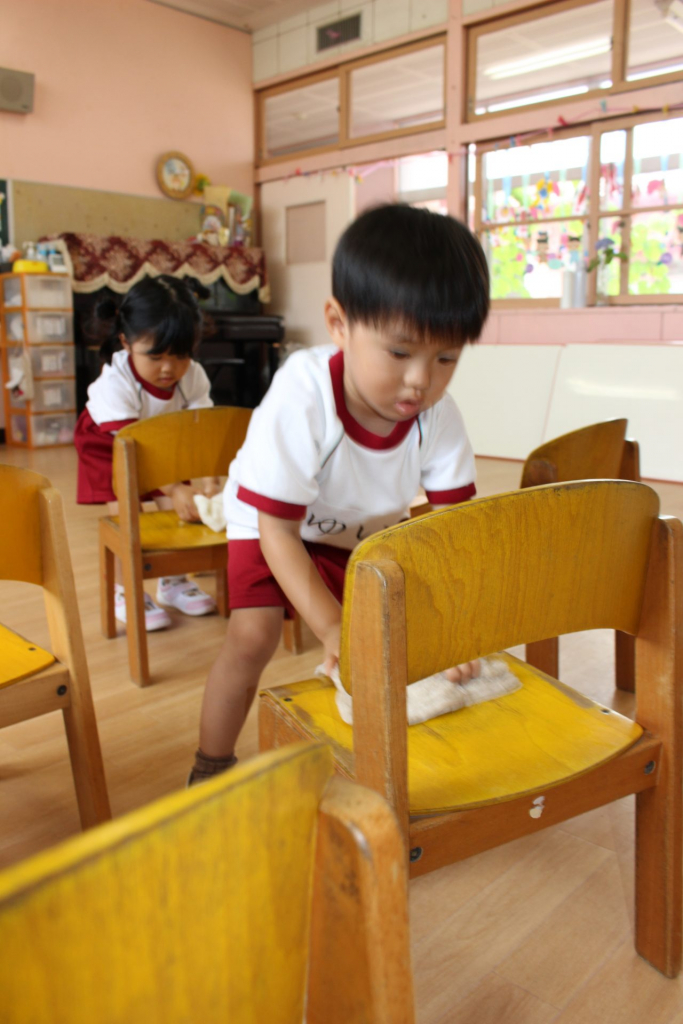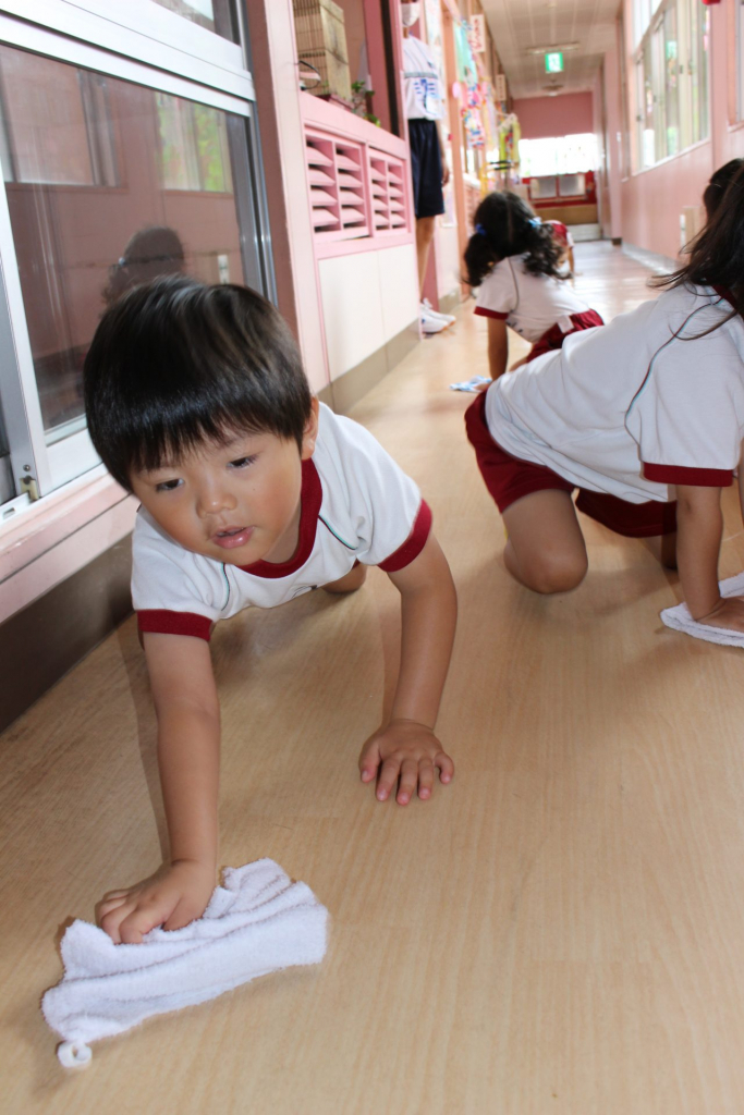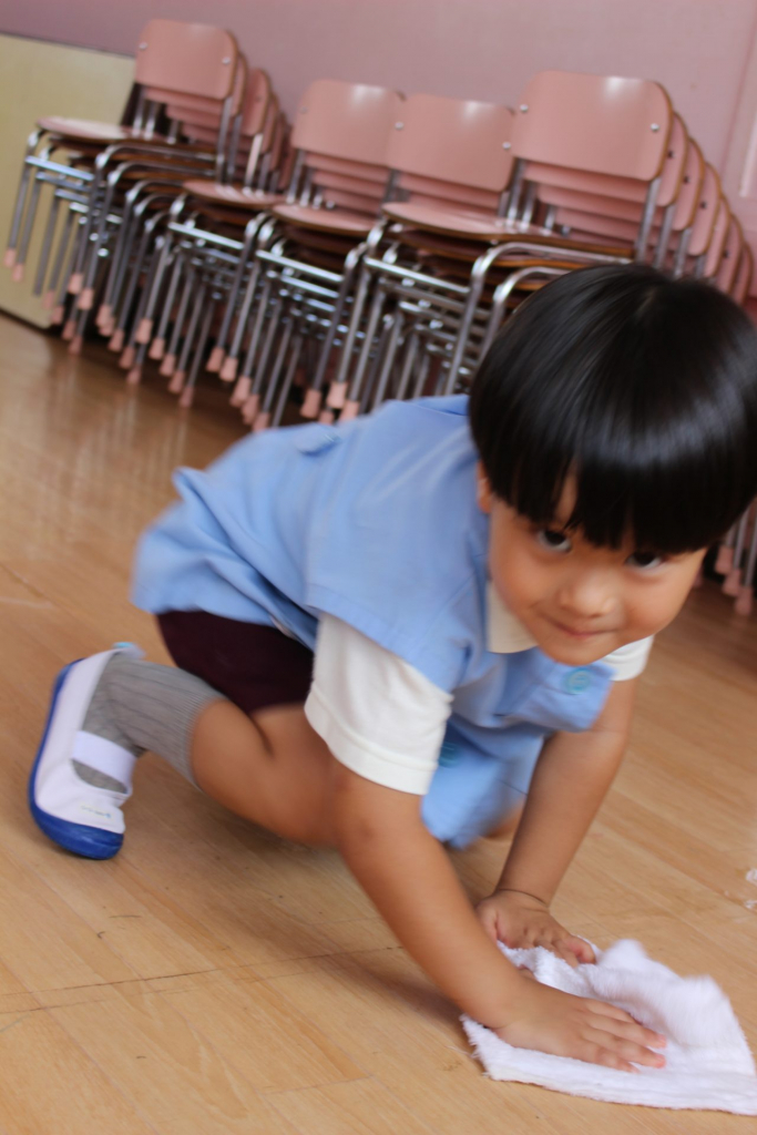 毎日使っているお部屋や、ロッカーやおもちゃに、「ありがとう」の気持ちを込めて行いましょう!