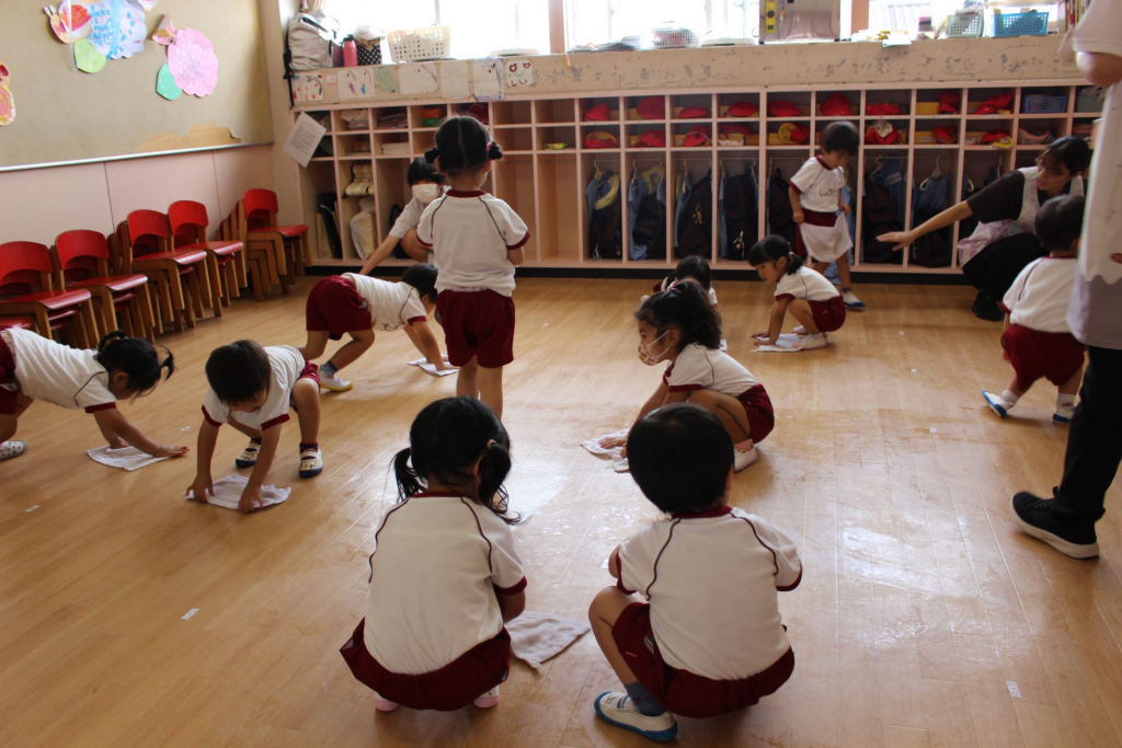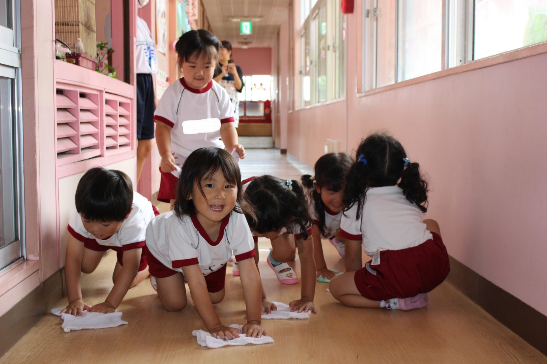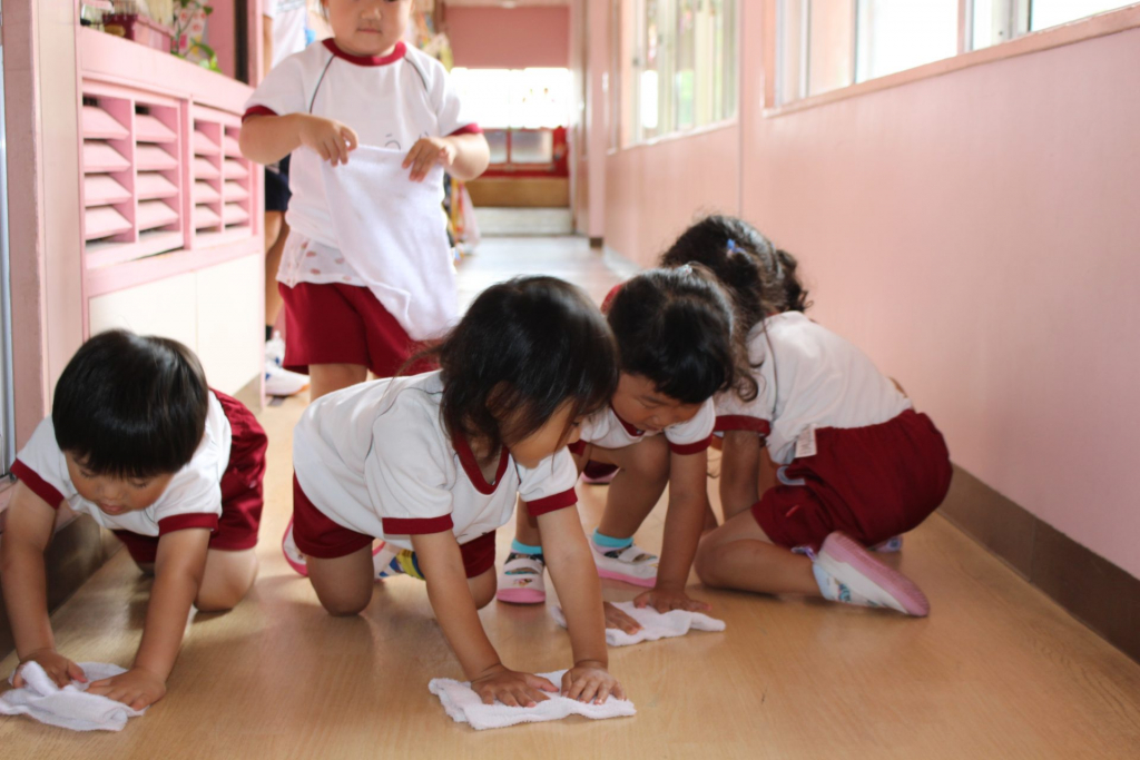 と、子どもたちに説明します。みんなで幼稚園をお掃除することにしました。