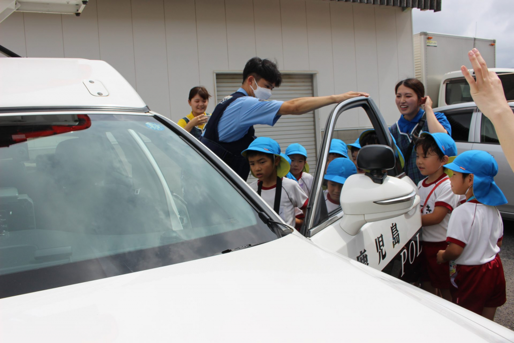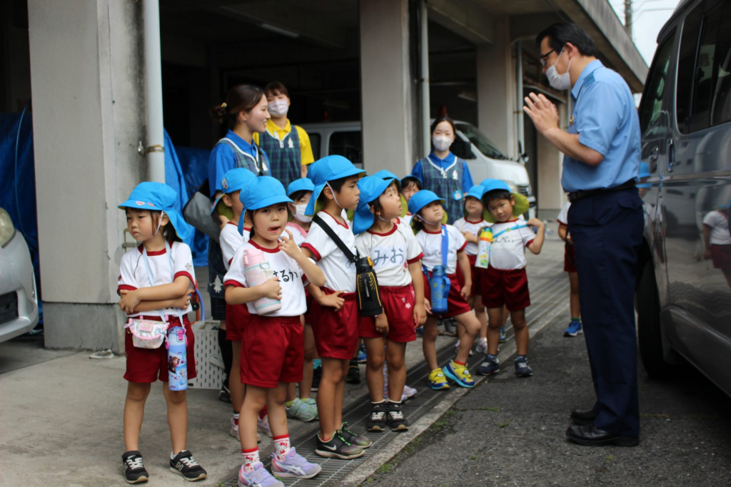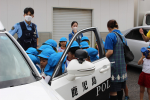 子どもたちにとって警察署にお邪魔するのは初めてだったので、到着するとみんな興味津々で、周りをキョロキョロ。