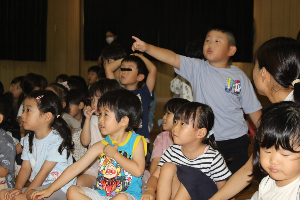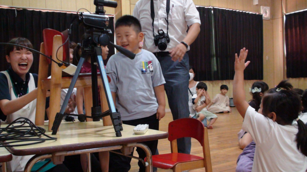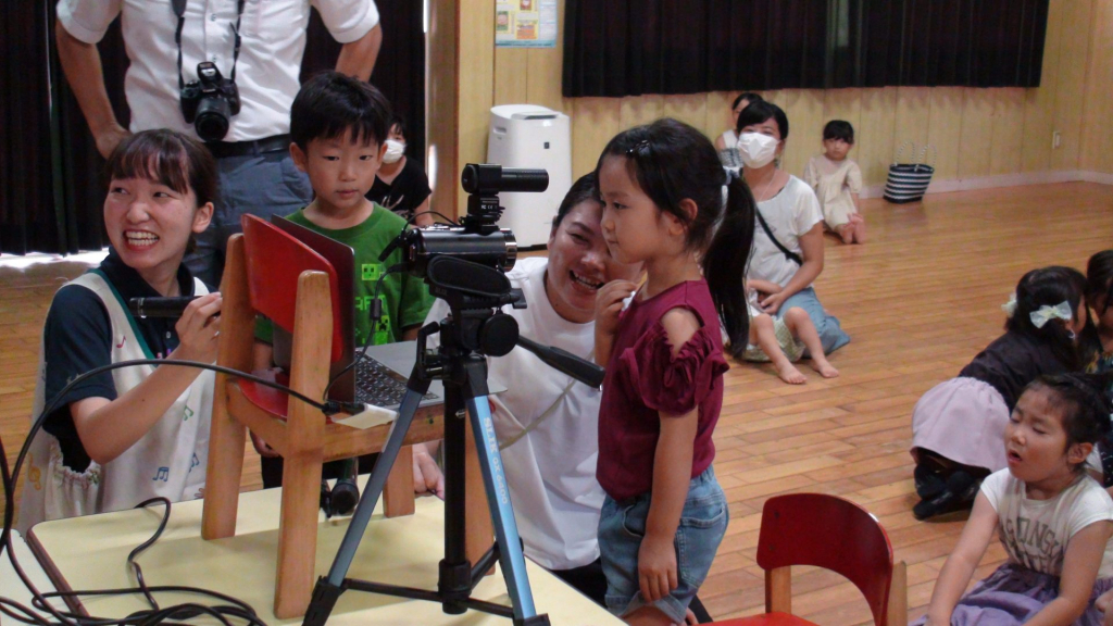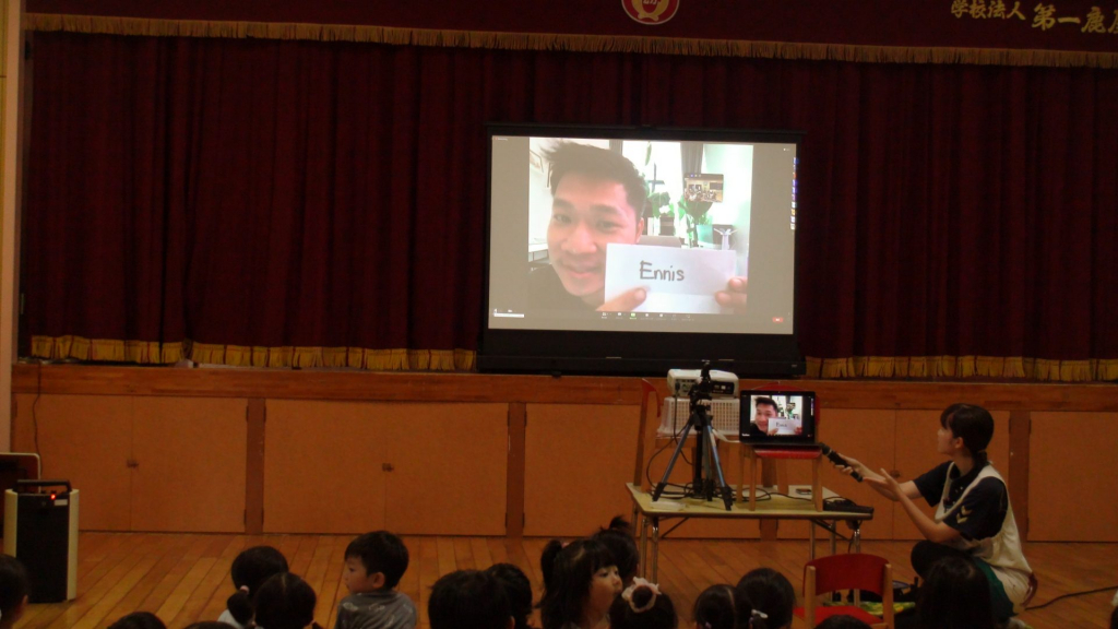 同時通訳付でしたので、ご紹介内容も子どもたちにスムーズにやりとりできて、子どもたちも興味津々でスクリーンを前のめりで眺めていました。