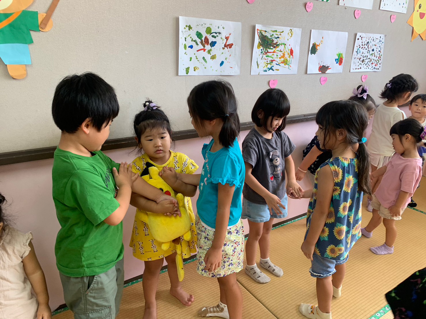 そして、夏休みに、子どもたちの主体性を活かす保育として、たんぽぽ組、にじ組にて「仲良し保育(異年齢児保育)」を行いました。
