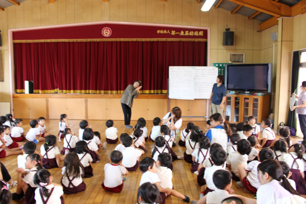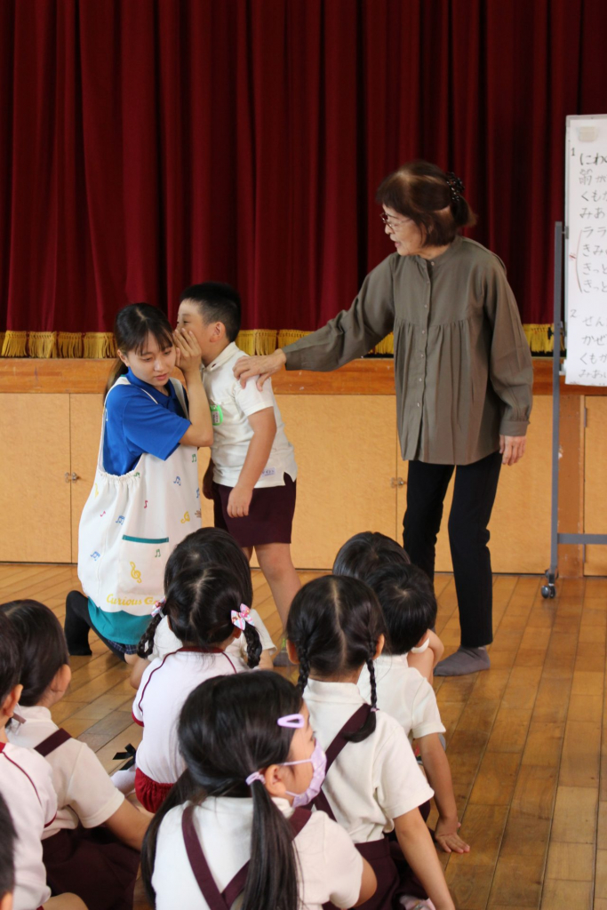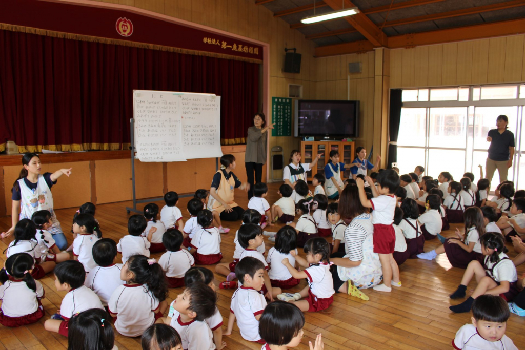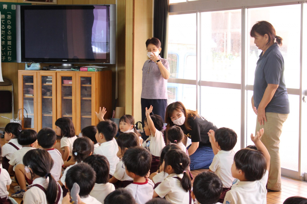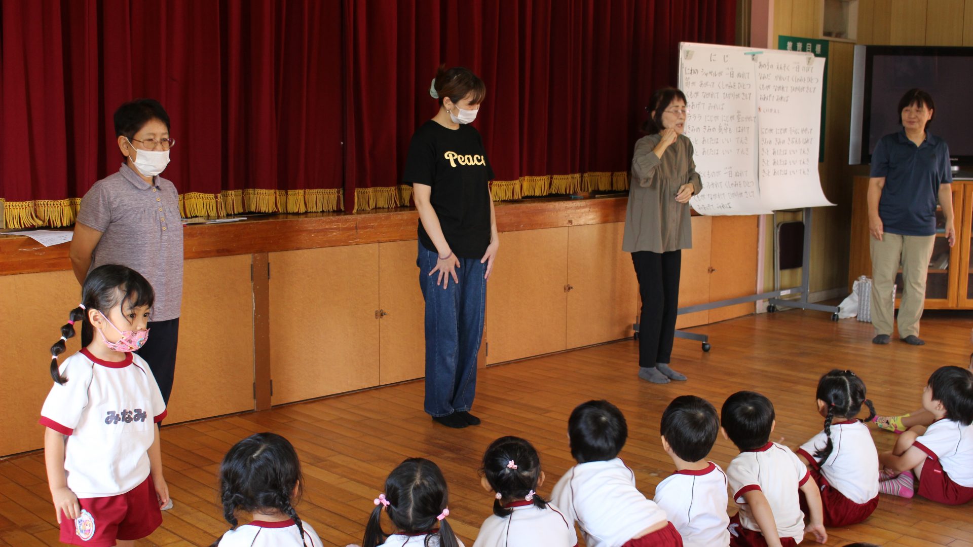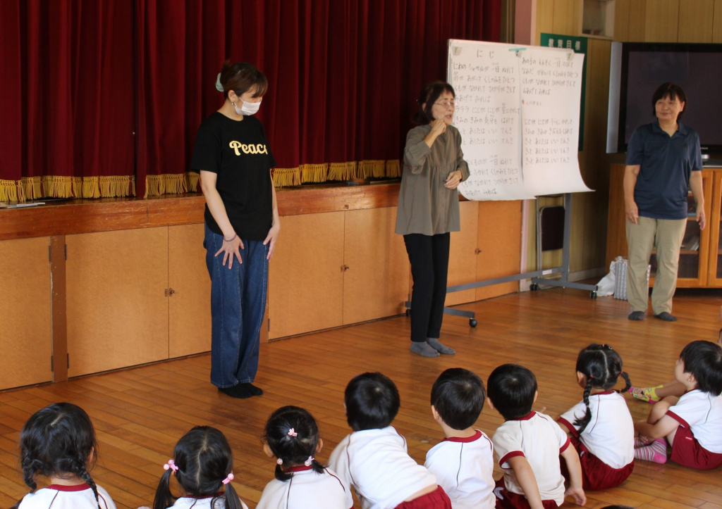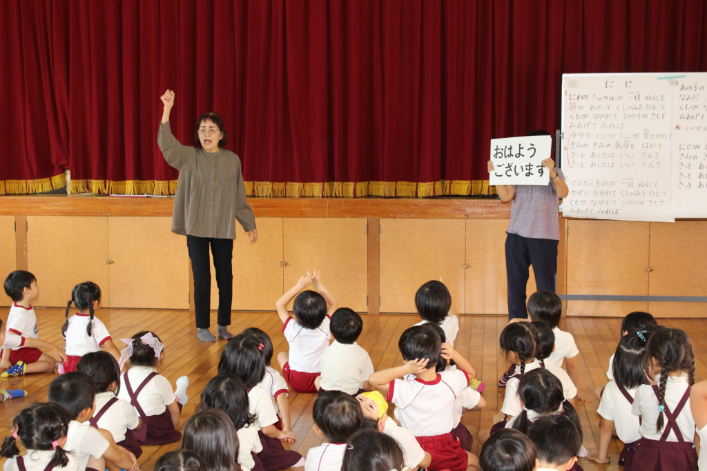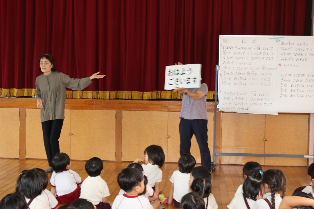 初めての年少組やチャオ組の子どもたちも、珍しそうな顔をしながらも、興味津々に手話サークルの先生方に注目していました。