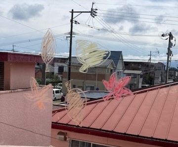 ガラスに描いた線や絵が日の光に透けて、色鮮やかさが際立ちます。