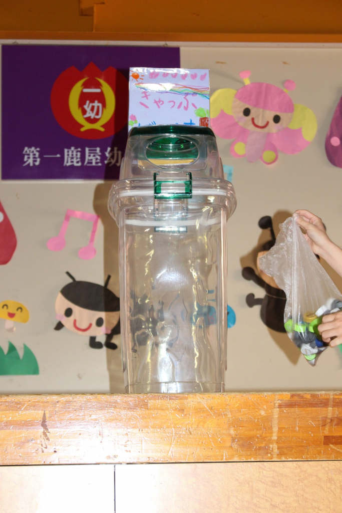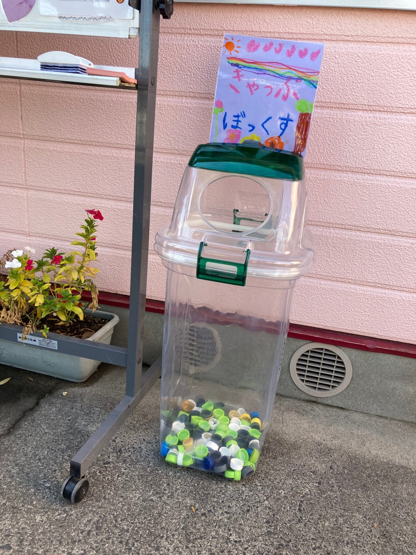 そこで、当園では本日より、お家で使ったペットボトルの蓋を持ってきてもらうように、子どもたちに協力をもらうようにしました。