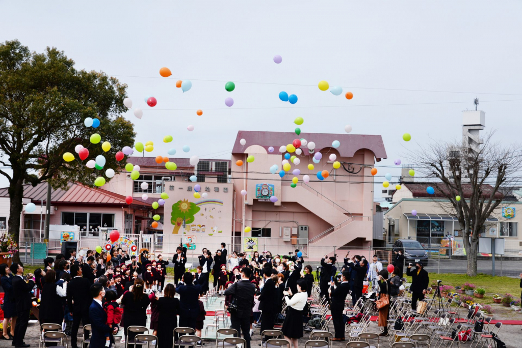 卒園式の最後には、皆で風船を空に放ちました。