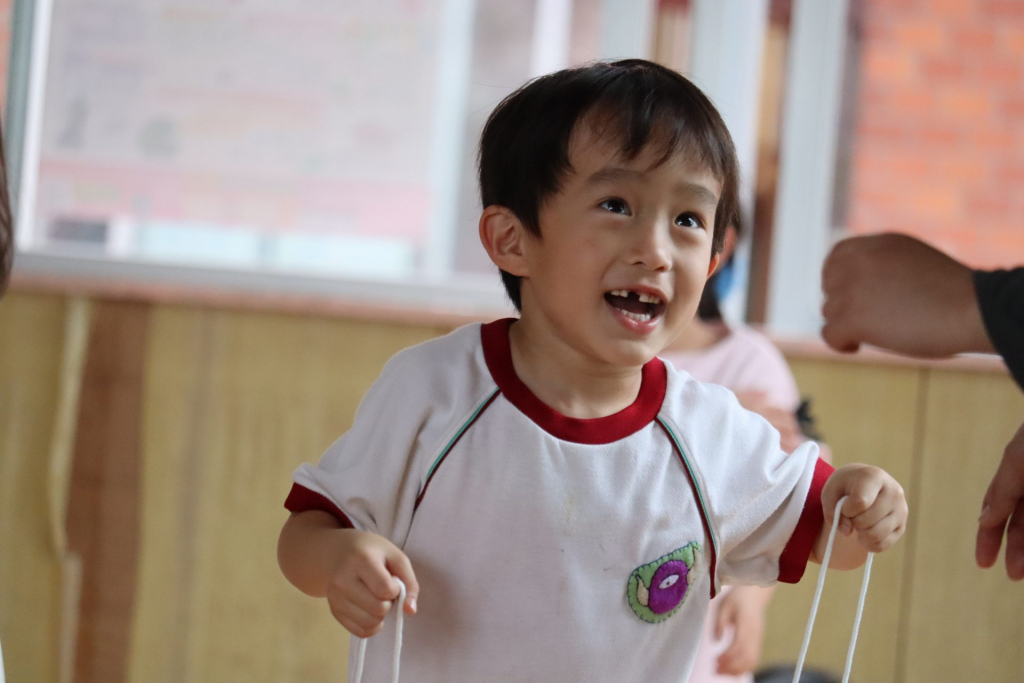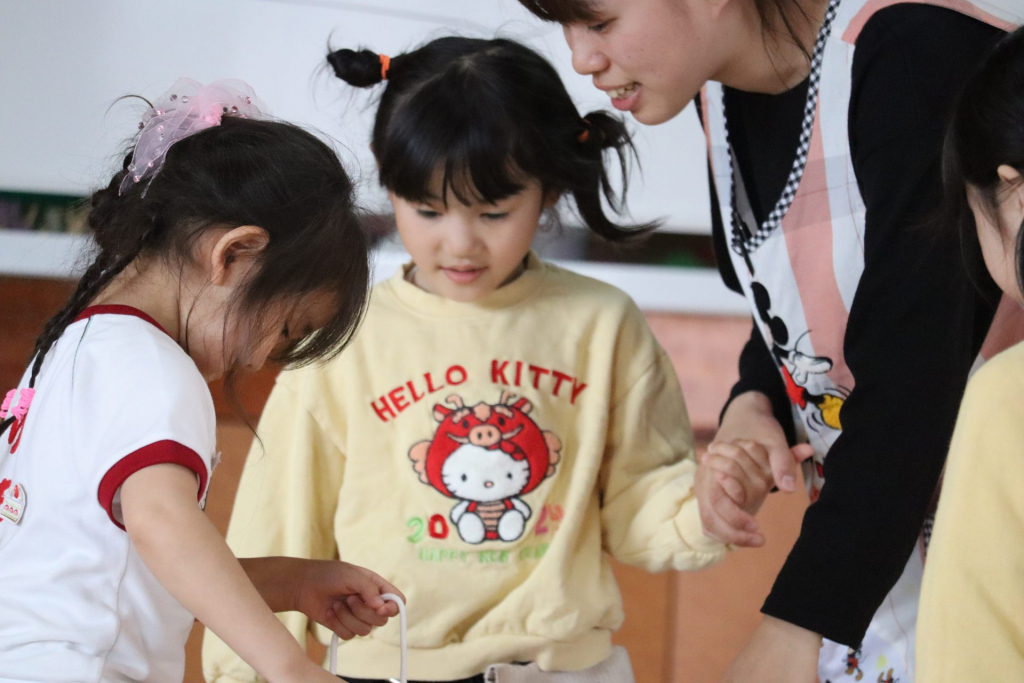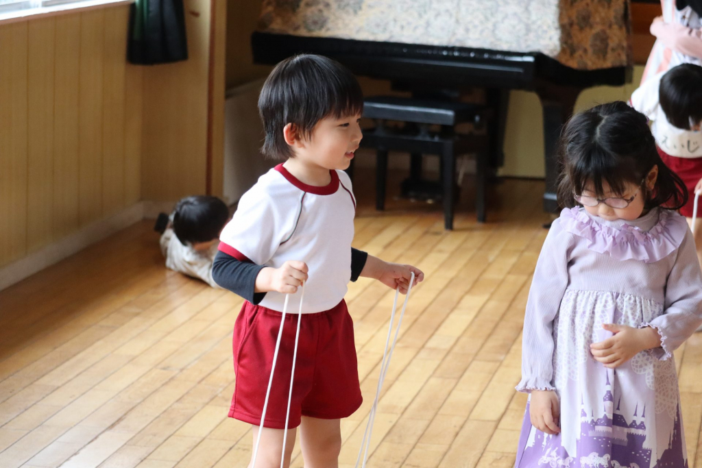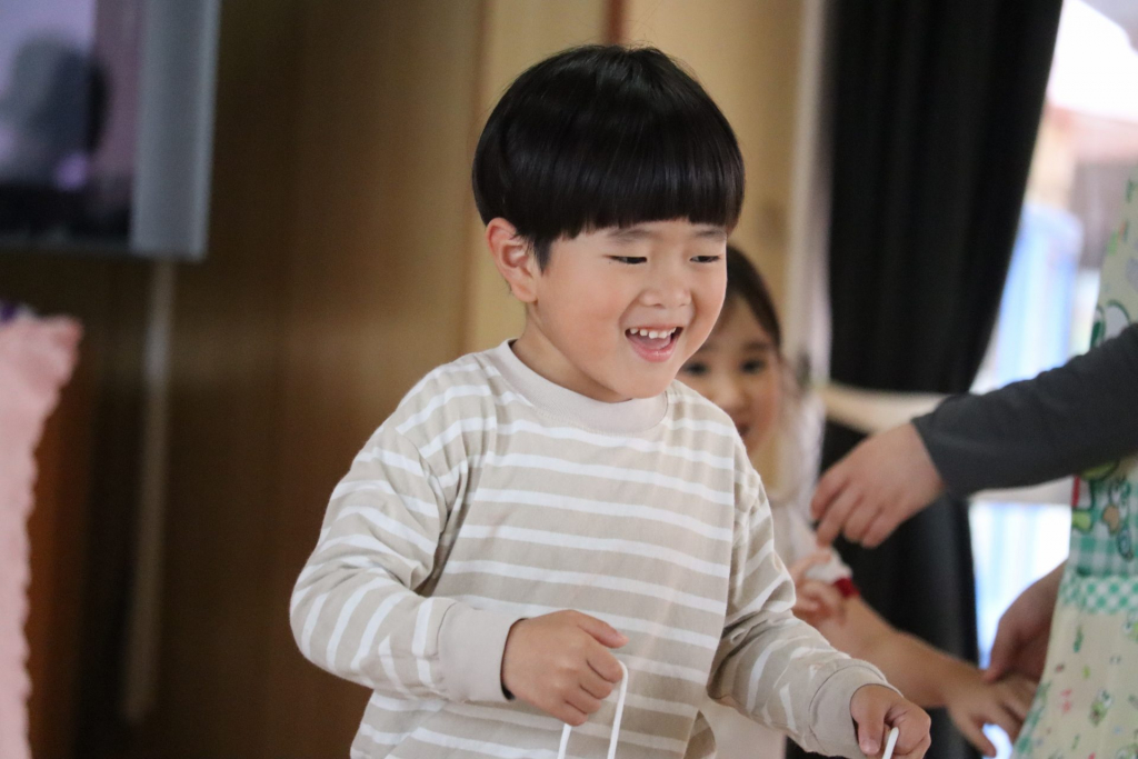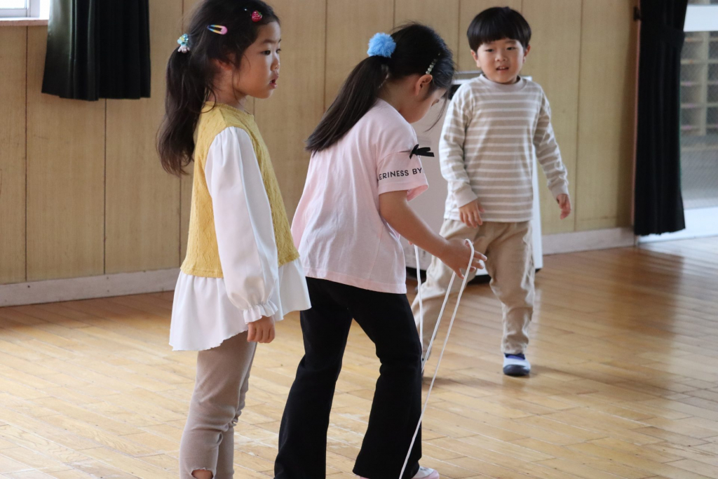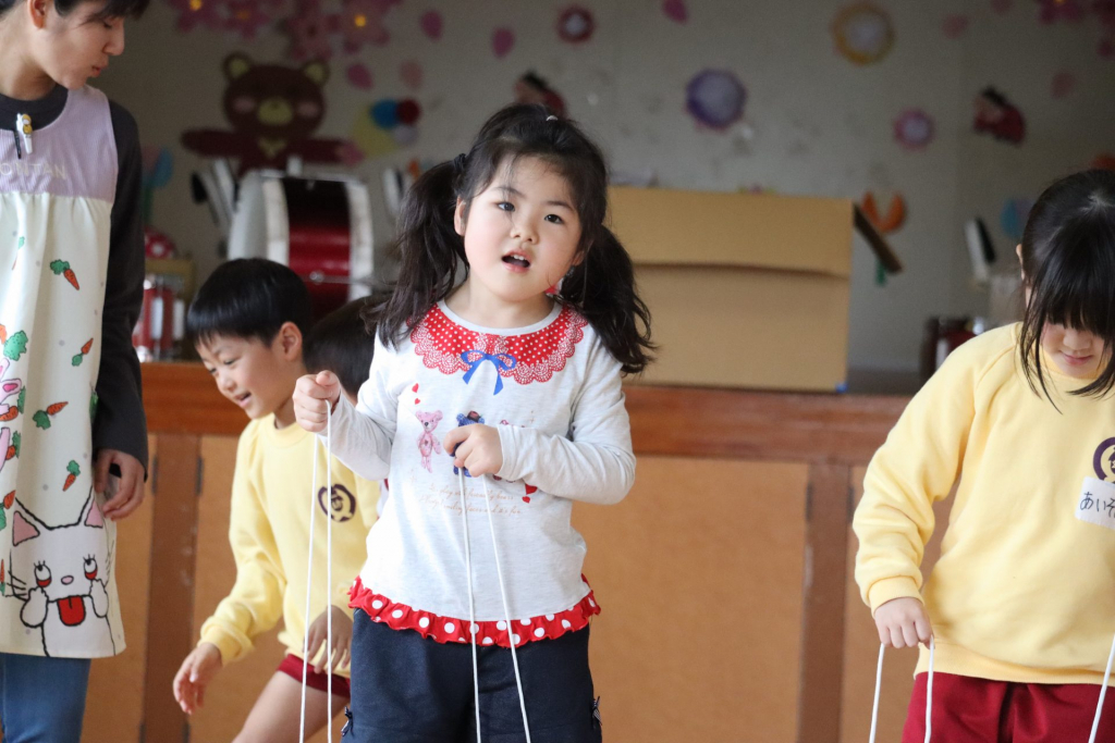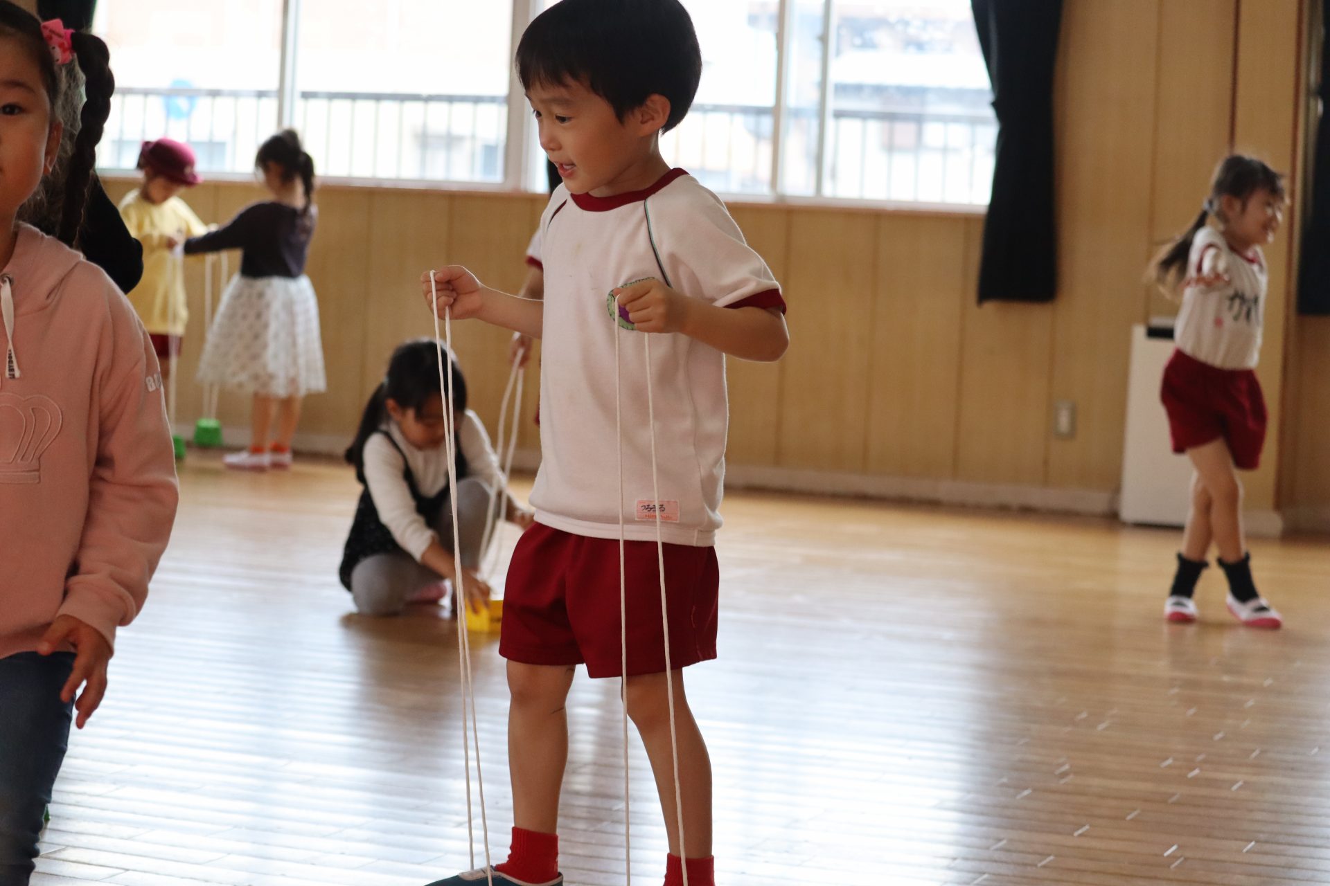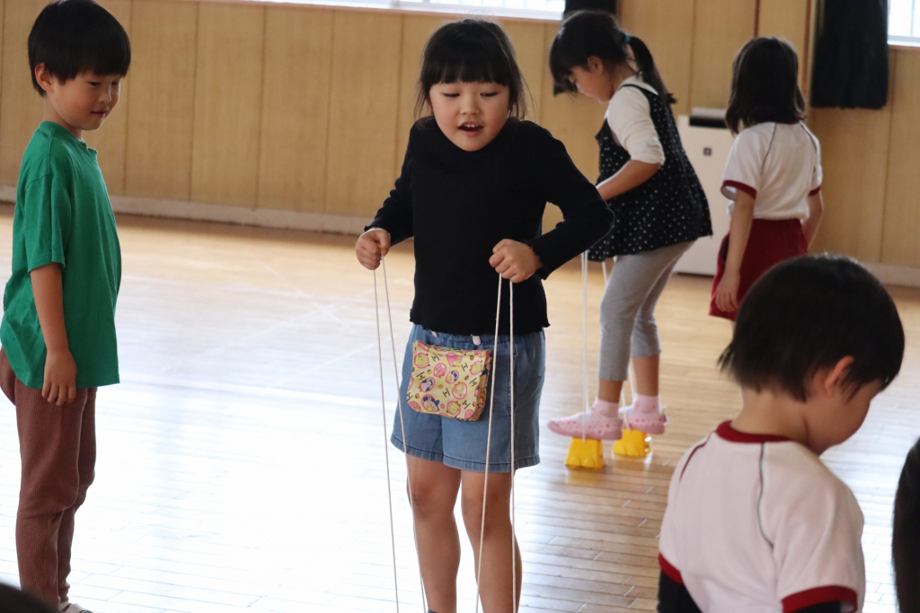 昨年度の卒園記念品でいただいた”ポックリ”を年長組の子どもたちが初めて遊んでみました。