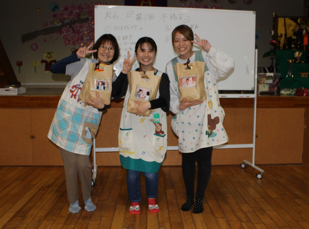 スタッフそれぞれが袋の中にプチ・プレゼントを入れて、誕生月の先生たちに渡しました。