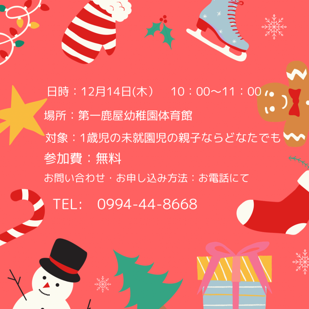 ~未就園児の保護者様へ~ 12月14日(木)1歳児未就園児親子教室はクリスマスパーティをやります🎉